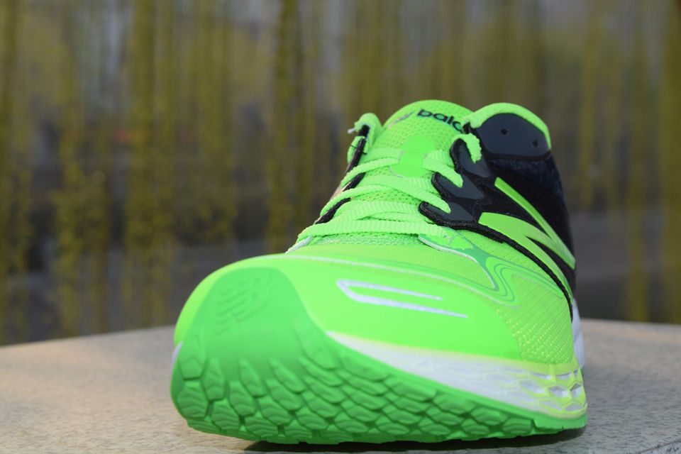 在大底的耐磨部分用上了一整片的Blown Rubber耐磨橡胶,这在以前的New Balance的鞋子里也是十分少见的,同样采用智能蜂窝纹路,不同大小的颗粒适应脚掌各区受力,更增加耐磨性适应都市路面情况。前后6毫米的高度差,让我们测试的时候跑起来非常自然,丝毫阻力也没有,这一季的新品还配有大胆鲜明的萤光绿、亮桃粉等配色,与此前New Balance略微保守的风格比起来真是变化极大,经过我们的测试,推荐这款跑鞋对应追求轻快速度的城市跑者使用。